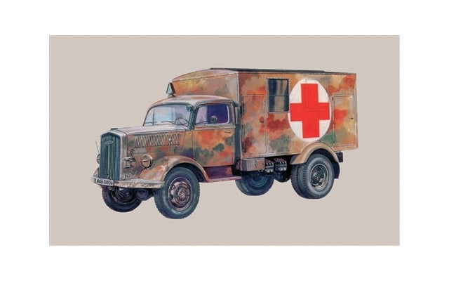 The Opel Blitz medium truck was used extensively by the German Army on all fronts during World War Two. Several thousand of them were produced. They were also used as platforms for anti-aircraft weaponry and tanker, workshop and ambulance versions were made. Of sturdy construction and easy to maintain, it also featured good off-road performance which made it invaluable in both the Russian and African campaigns.