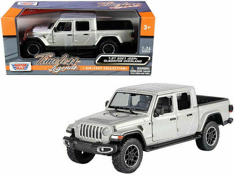 Get ready to conquer the roads with this 2021 Silver Jeep Gladiator Overland Hard Top (scale 1 : 27). This beast will have you cruising in style and making a statement. Don't underestimate the power and charm that comes with it!