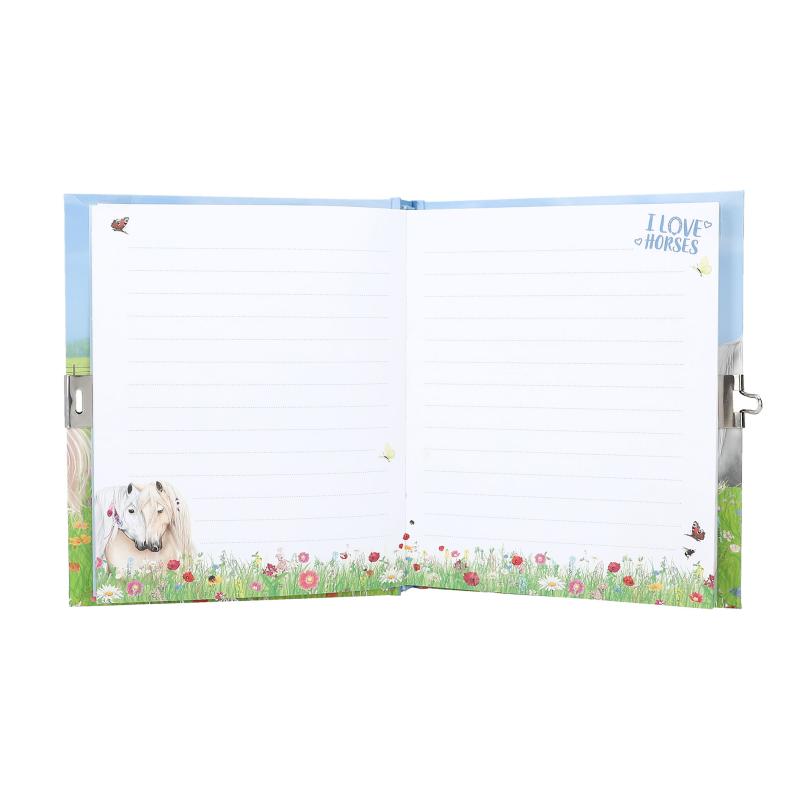 For secrets and thoughts: Miss Melody's diary with a cute heart-shaped castle and large horse motives on a colourful flower meadow at the front and back has 192 finely lined and lovingly illustrated inside pages.
